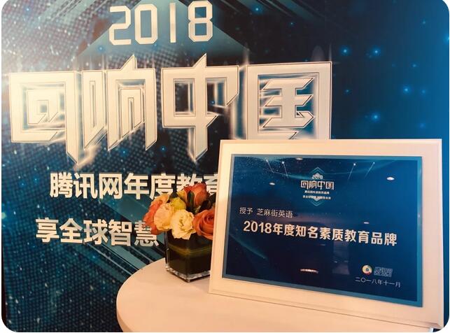 11月27日,享全球智慧,创教育未来——2018“回响中国”腾讯网年度教育总评榜在北京盛大举行。本次盛典将2018年中国教育的发展成果做了全面的展示,领导、专家、教育精英、行业楷模汇聚一堂,通过互动论坛、演讲等方式进行沟通与交流,盛典中一年一度的专业评选也已成为教育行业的权威风向标。在这场中国教育界的产业价值评选活动中,芝麻街英语凭借其品牌公信力及强劲实力荣膺“2018年度知名素质教育品牌”!